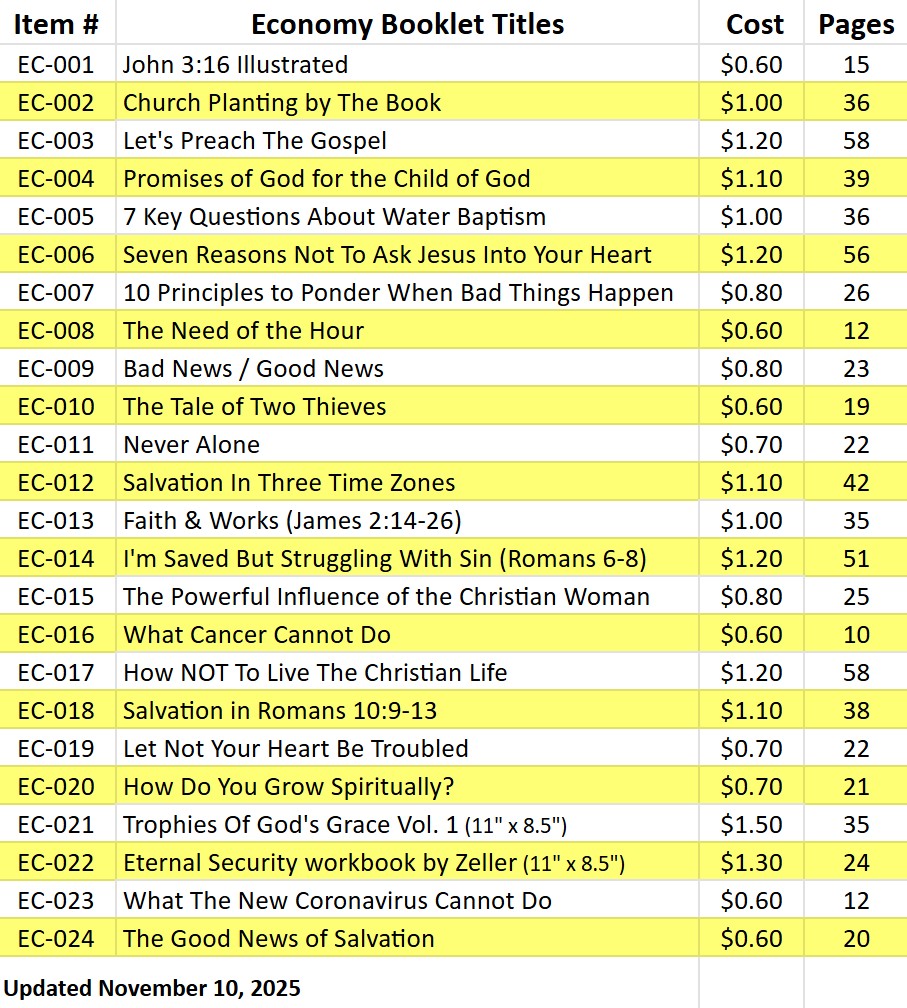 This booklet is a collection of personal testimonies that were first published in the Grace Family Journal. Though these individuals come from a myriad of religious or irreligious backgrounds, there is a common thread that unites each of them. In every case, the Holy Spirit used the Word of God to underscore their need of salvation and the wonderful truth of the Gospel of grace. Upon hearing and grasping the significance of how Jesus Christ died for their sins and rose again, they put their faith in Christ alone to save them from a Hell they deserve to a Heaven they don’t. They then knew with absolute assurance that they had received the forgiveness of all their sins and the gift of eternal life. (35-page comb-bond booklet)